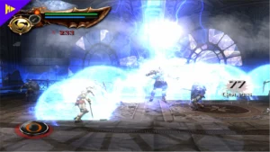 A jogabilidade de God of War II refinou tudo o que o primeiro jogo havia introduzido. Kratos empunha as Blades of Athena, lâminas acorrentadas que giram em movimentos devastadores, rasgando tudo em seu caminho. A sensação de poder é inigualável — cada golpe, cada combo, é um espetáculo de destruição coreografada. O sistema de combate é uma dança brutal entre precisão e caos. A variedade de inimigos — desde harpias e górgonas até ciclopes e minotauros — exige estratégias diferentes, tornando cada confronto uma experiência única. Além disso, novas armas, magias e habilidades tornam o espartano uma verdadeira força imparável. As batalhas contra chefes são um show à parte. Desde o confronto inicial com o Colosso de Rodes — uma sequência que beira o inacreditável para os padrões do PlayStation 2 — até encontros com figuras lendárias como Perseu, Teseu e Euríale, o jogo se transforma em uma sucessão de momentos épicos que testam reflexos e coragem.