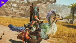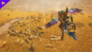 Outro destaque é o Hooked Slinger, uma ferramenta que revoluciona a movimentação. Ela permite recolher itens à distância, escalar ambientes e até mesmo manipular elementos do cenário. E com o novo companheiro de montaria, o Seikret, a exploração atinge um novo nível. Ele não só transporta o caçador pelas Terras Proibidas com agilidade, como também possibilita curas, troca de armas e coleta de itens enquanto está em movimento. Pela primeira vez, a ação não é interrompida — tudo acontece em tempo real.
