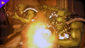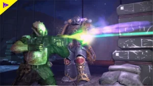 O coração de Space Marine sempre foi seu sistema de combate. Diferente de shooters convencionais, ele não obrigava o jogador a se esconder atrás de coberturas ou esperar regeneração automática. Aqui, a sobrevivência vinha da agressividade. O Capitão Titus se curava ao executar inimigos com golpes brutais. Isso incentivava a luta direta, transformando cada confronto em um espetáculo de sangue e aço. A sensação de cortar um Ork ao meio com uma chainsword ou de despedaçar hereges com o martelo de energia permanece intacta, reforçada agora pela fluidez gráfica do remaster. É um combate que ativa o gatilho da adrenalina, onde cada movimento coloca o jogador no limite, entre a vida e a morte, entre a glória e o esquecimento.